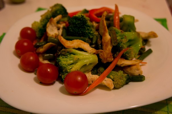 помидорки ,брокколи и кукурузу..морковь должна быть полусырая ( на мой взгляд